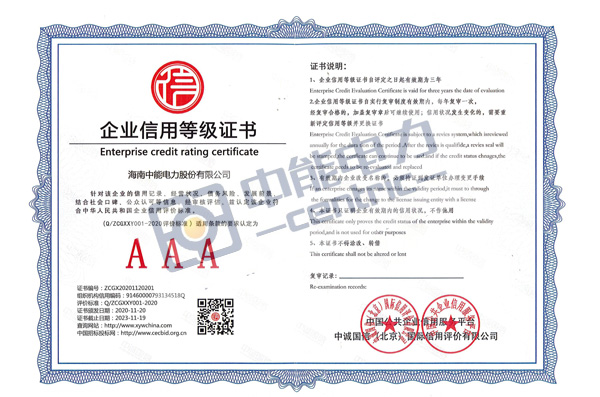AAA企业信用等级证书
